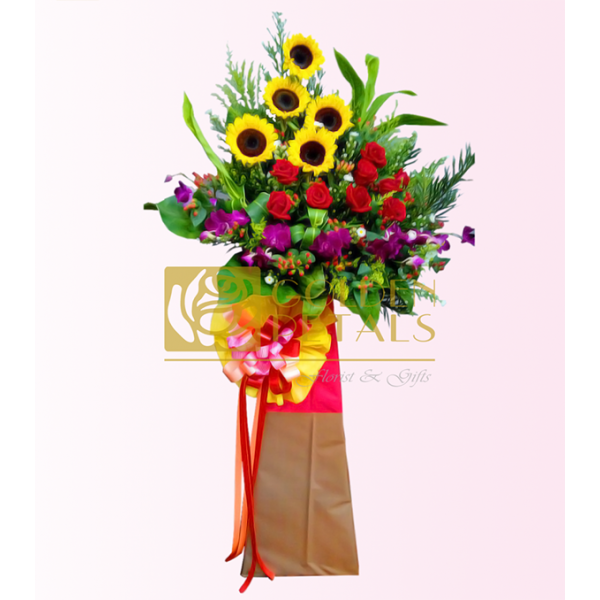 5 Sunflowers, 9 Roses, Mix With Other Flowers,